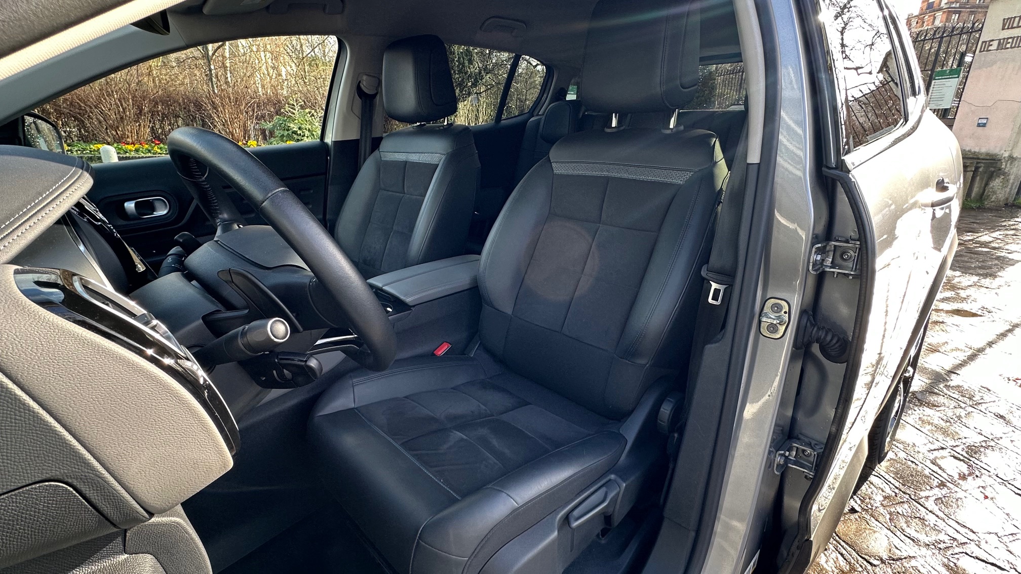 OPTIONS ET ÉQUIPEMENTS : Audio – Télécommunications : – 6 haut parleurs – Appel d’assistance localisé – Appel d’urgence localisé – Mirror screen – Radio – Services connectés – Bluetooth – Prise audio usb Conduite : – Follow me home – Frein stationnement électrique automatiq – Pack drive assist sur bvm – Pack drive assist sur eat8 – Système d’accès sans clé – allumage automatique des feux – démarrage sans clé – détecteur de pluie – limiteur de vitesse – régulateur de vitesse Couleur : – Gris acier (m) Extérieur : – Ceinture de vitrage chromée – Eclairage statique d’intersection – Feux arrière à led – Feux de freinage d’urgence – Hayon mains libres – Jantes alu – Pack city camera plus – Projecteurs full led – Système d’éclairage intelligent – jantes : alliage – jantes alliage – radar arrière de détection d’obstacles – radar d’aide au stationnement – rétroviseurs dégivrants – rétroviseurs rabattables – rétroviseurs électriques Intérieur : – 3 sièges individuels en rang 2 – Fixations isofix aux places arrières – Lampes de lecture à l’avant – Lunette arrière surteintée – Ouverture des vitres séquentielle – Pédalier sport – Sige conducteur avec rglage lombaire – Siège conducteur chauffant – Siège conducteur électrique – Siège passager chauffant – Sièges arrière coulissants – Sièges rang 2 inclinables – Sièges rang 2 rabattables à plat – Verrouillage centralisé des portes – Vitrage latéral feuilleté – Vitres arrières électriques – climatisation : automatique – fermeture centralisée – prise 12V – réglages du volant : profondeur – rétroviseur interieur electrochrome – sieges reglables en hauteur – siège conducteur réglable en hauteur – verrouillage à distance – vitres avant éléctriques – volant cuir Pack : – Pack safety + – Vitres arrire surteintes – nombre de rapports : 8 vitesses – siège passager réglable – volant multifonctions – volant réglable Sécurité : – Airbag passager déconnectable – Détecteur de sous gonflage – Freinage automatique d’urgence – Reconnaissance panneaux de signalisation – Système de contrôle des angles morts – Système de prévention des collisions – Témoin de bouclage des ceintures av – ABS – Aide au demarrage en pente – ESP – aide au freinage d’urgence – airbag conducteur – airbag coté passager – alerte de franchissement involontaire de lignes – fixations ISOFIX – phares antibrouillard – radar avant de détection d’obstacles – répartiteur électronique de freinage Autres équipements et informations : – Cuir grainé graphite / tissu graphite – Packs look silver anodisé – Classe Crit’air : 1 – EQUIPEMENTS => Citroën connect nav avec mirror screen et citroën connect box avec pack sos et assistance inclus – MP3 – Puissance kilowatt : 96 kw – USB – dimension des jantes : 18 pouces – feux de circulation diurne – puissance réelle : 130 ch – émission CO2 : 112 g/km
